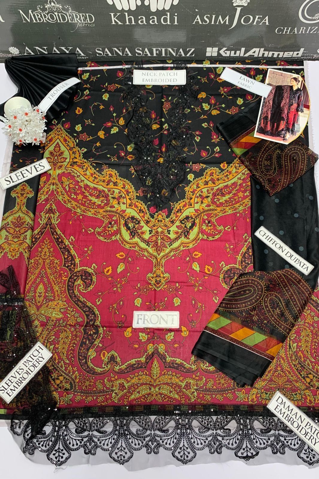 LAWN LUXURY PRINTED EMBROIDERED SHIRT COLLECTION 3PC Unstitched suit