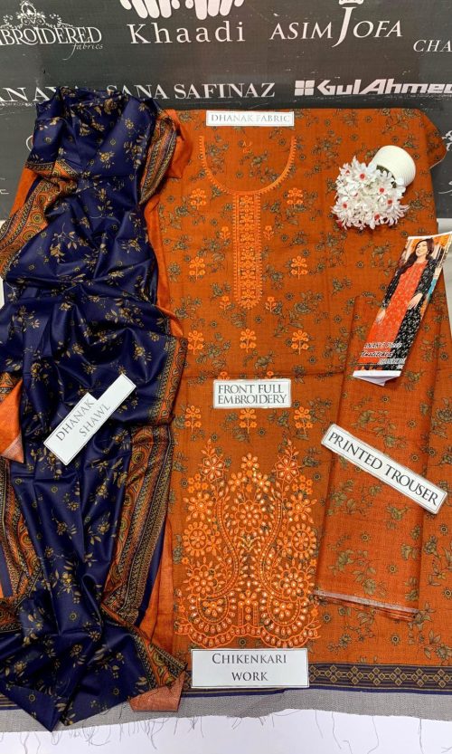 BJ Textile Heavy Embroidery 3PC Dhanak Suit JCH-055