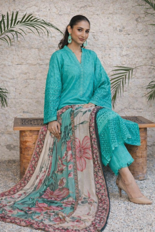 Johra luxury Embroidred Chickenkari LAWN 3PCBamber Embroided Dupatta UNSTICHED JCH-031